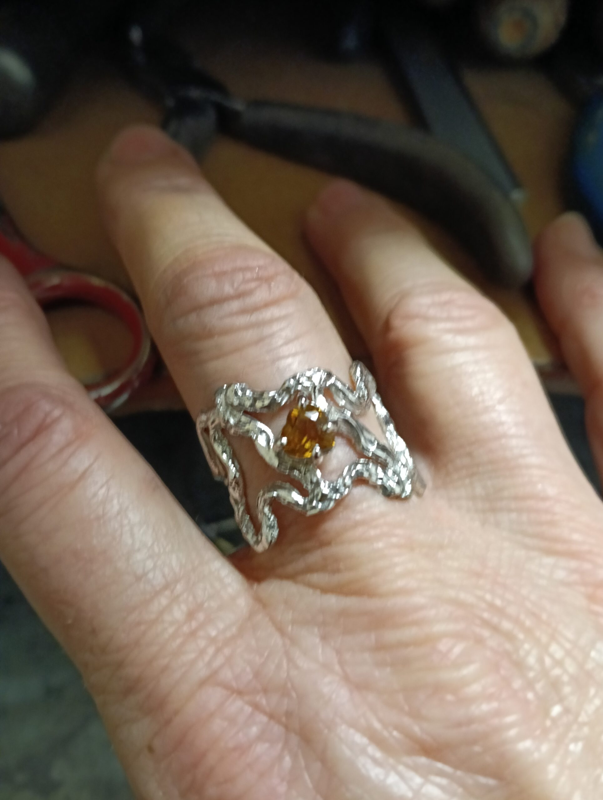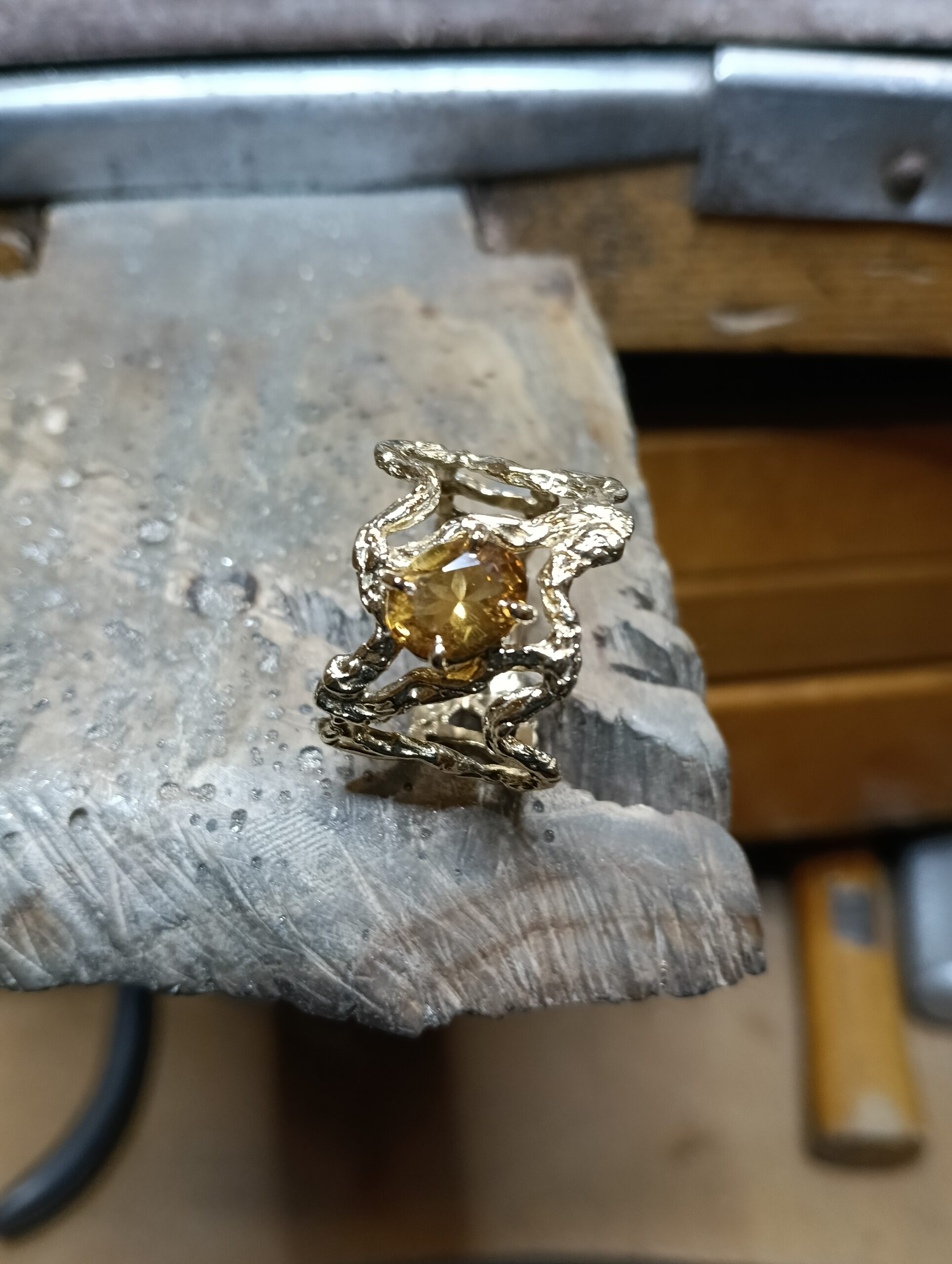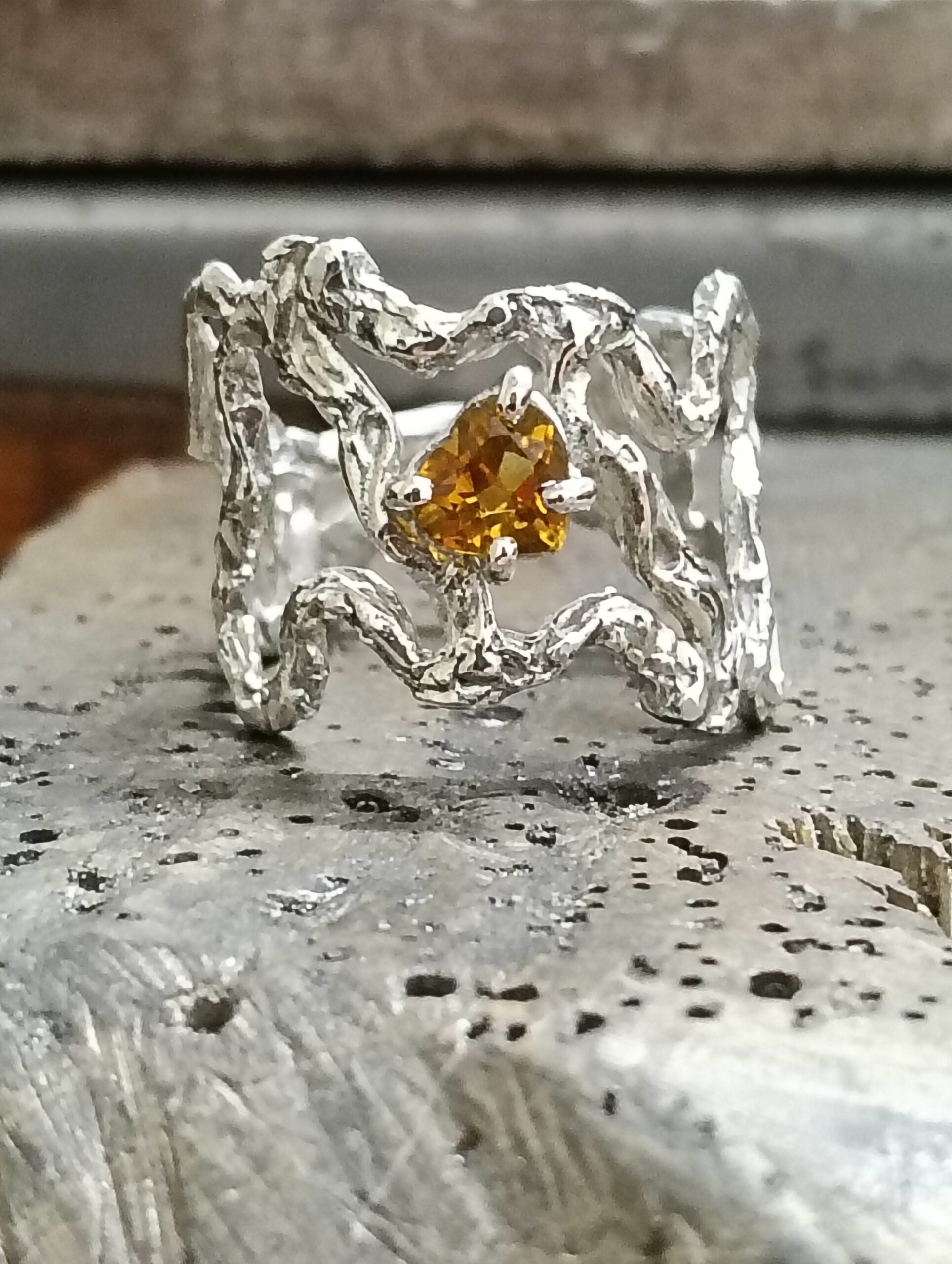 Anello in argento con topazio giallo taglio a cuore