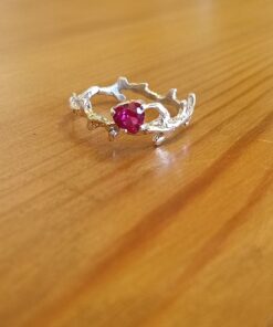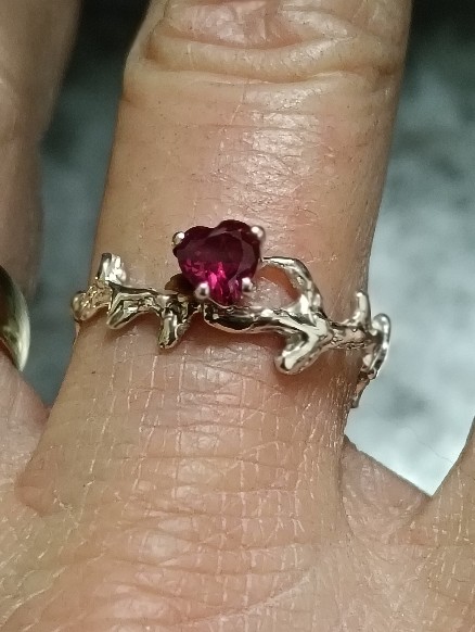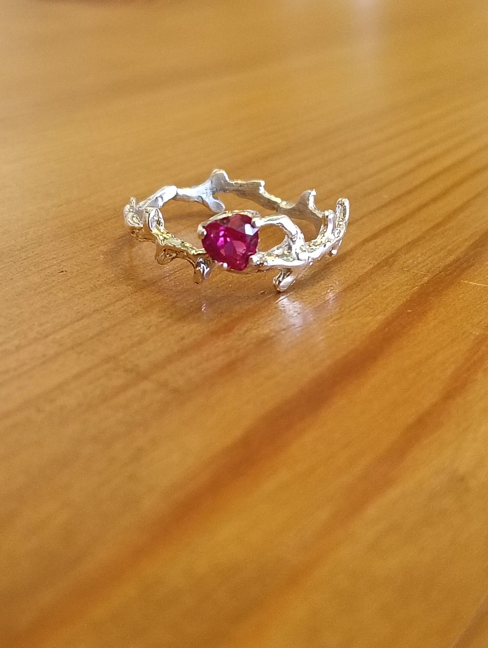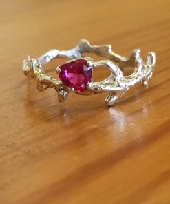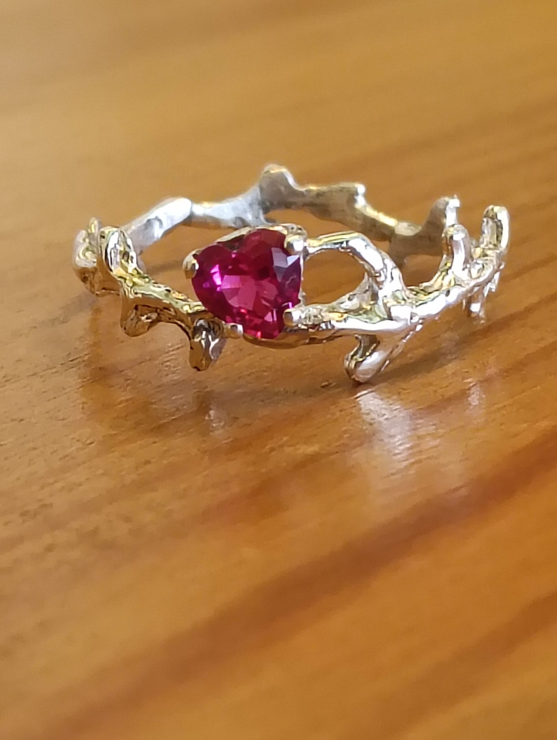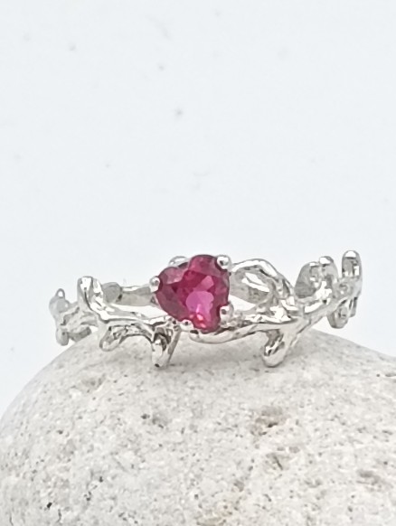 Anello argento con zircone rosso taglio a cuore. circonferenza mm61
