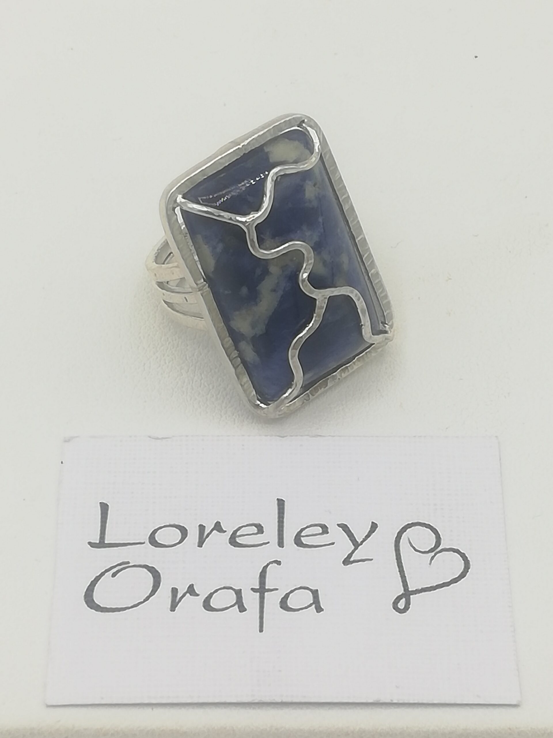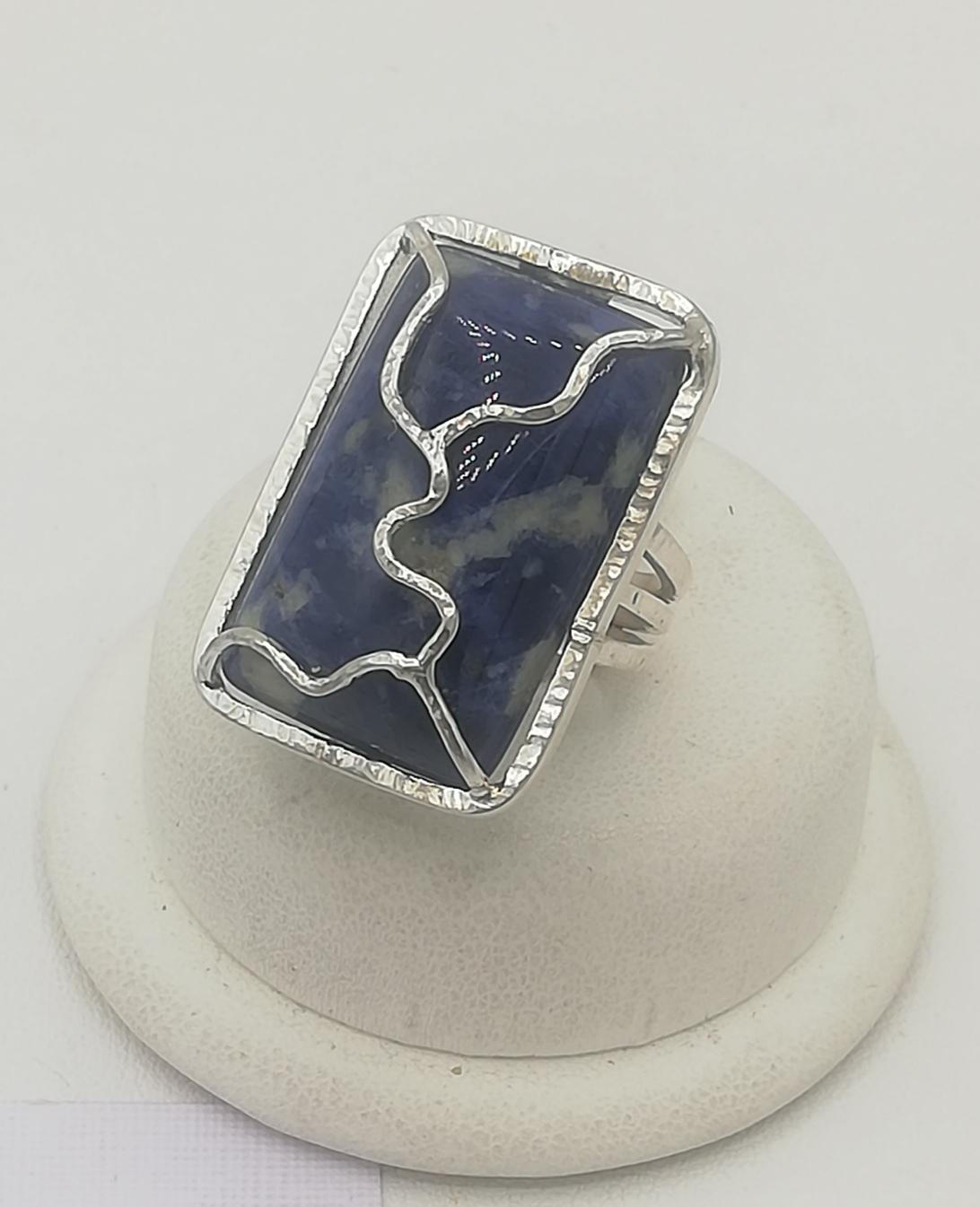 Anello argento realizzato a filo martellato con pietra in Sodalite