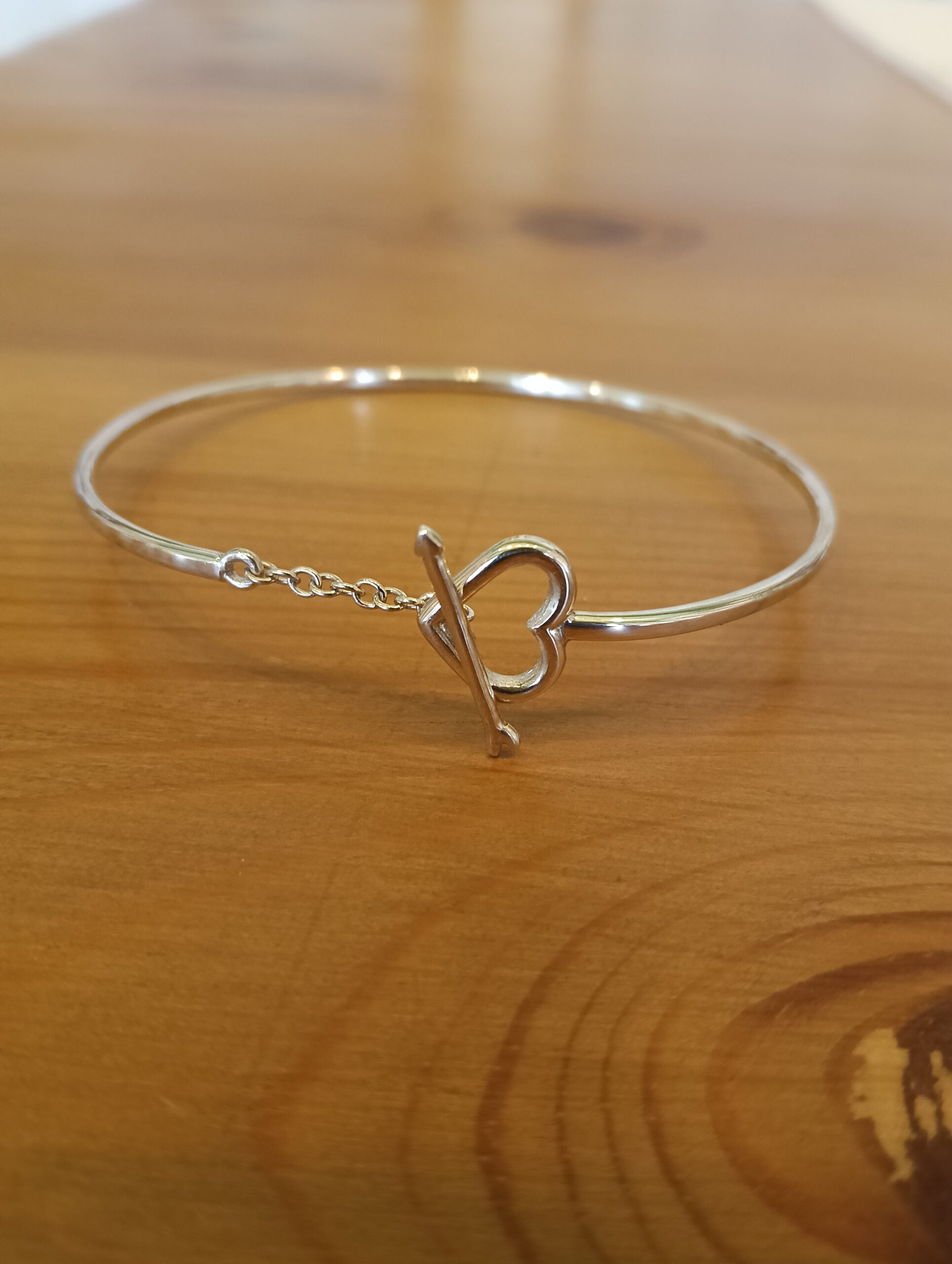 Bracciale argento rigido cuore e freccia. Misura circonferenza cm21