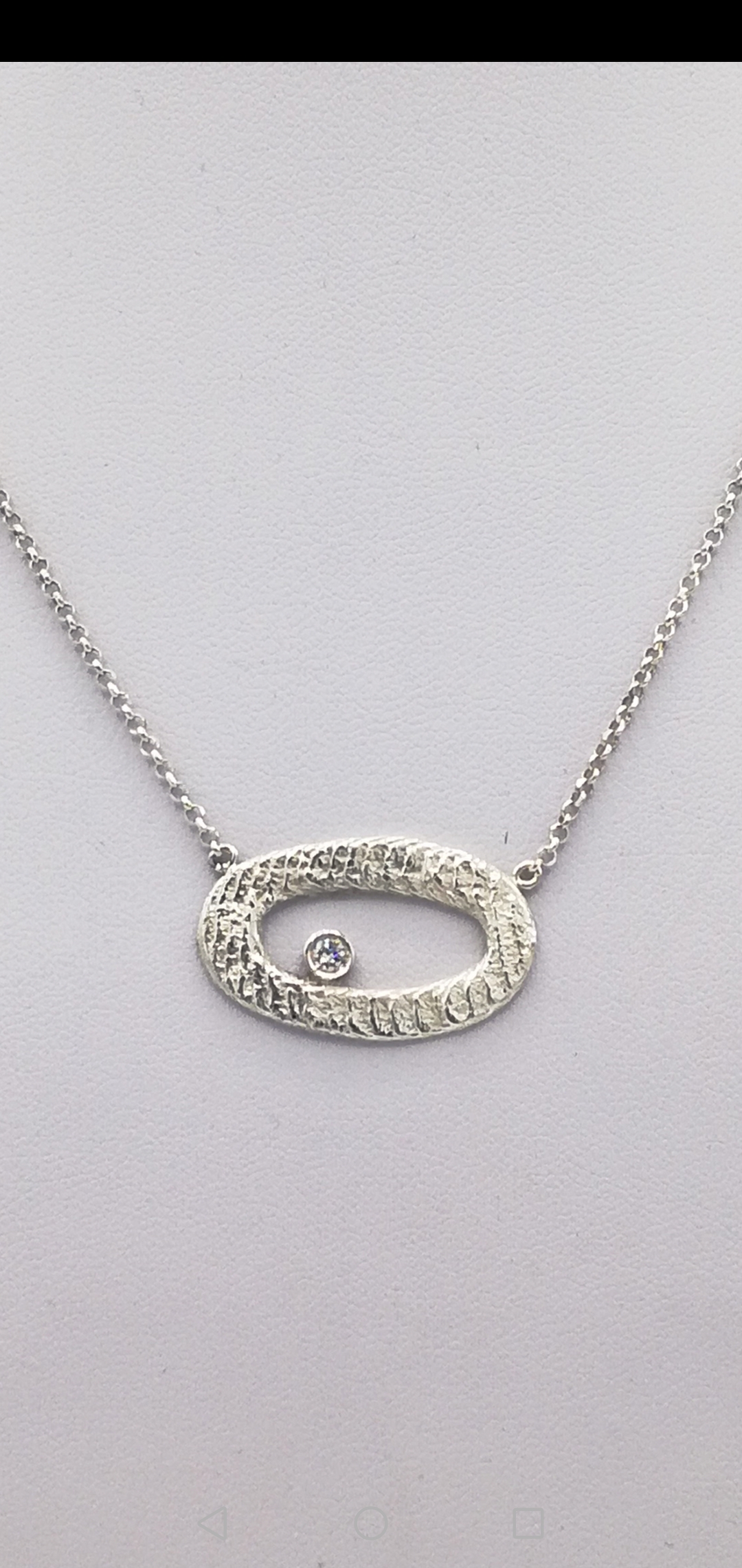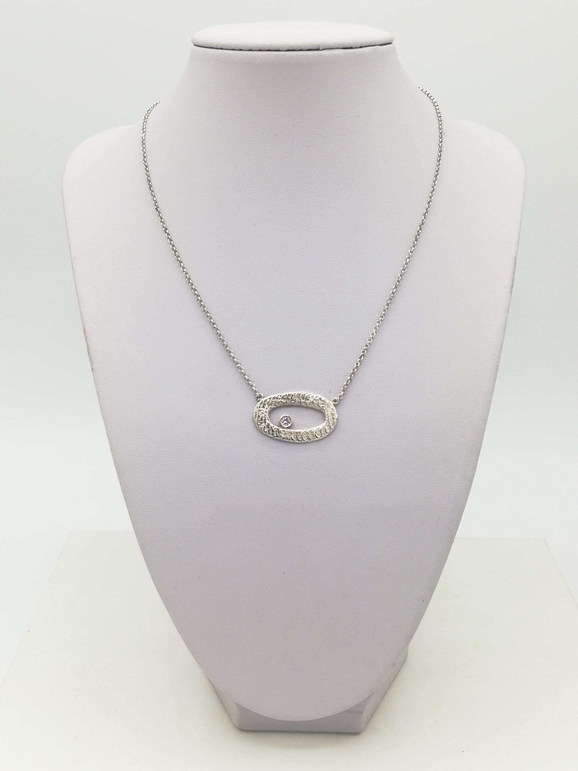 Girocollo argento con centrale realizzato in fusione con osso di seppia, e zircone (lunghezza cm 42)