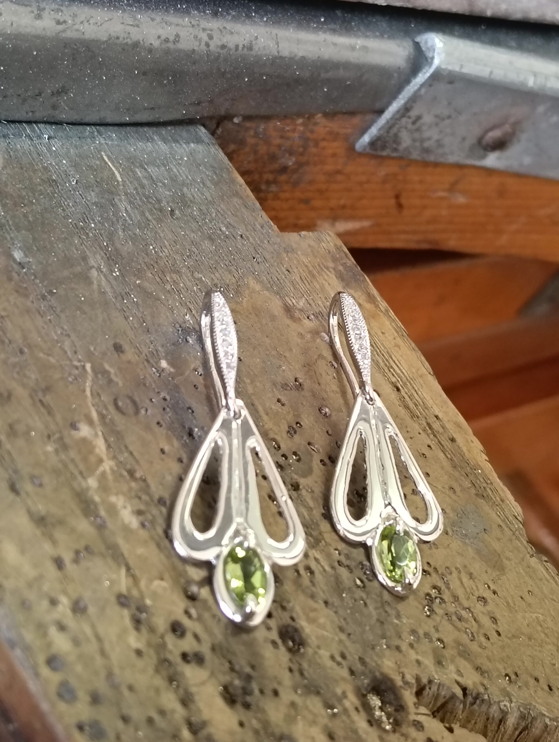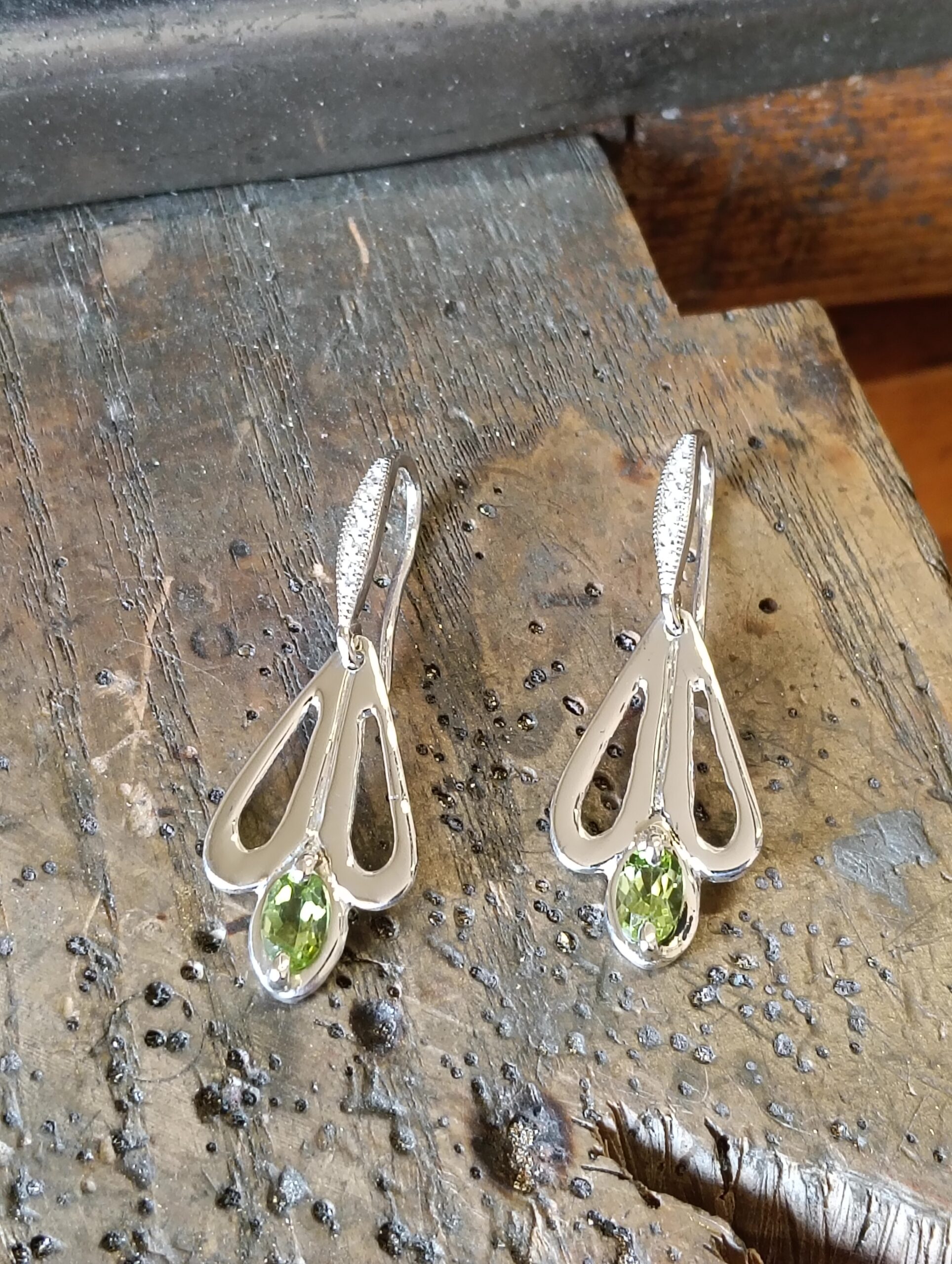 0recchini in argento con pietre in Peridoto verde e zirconi