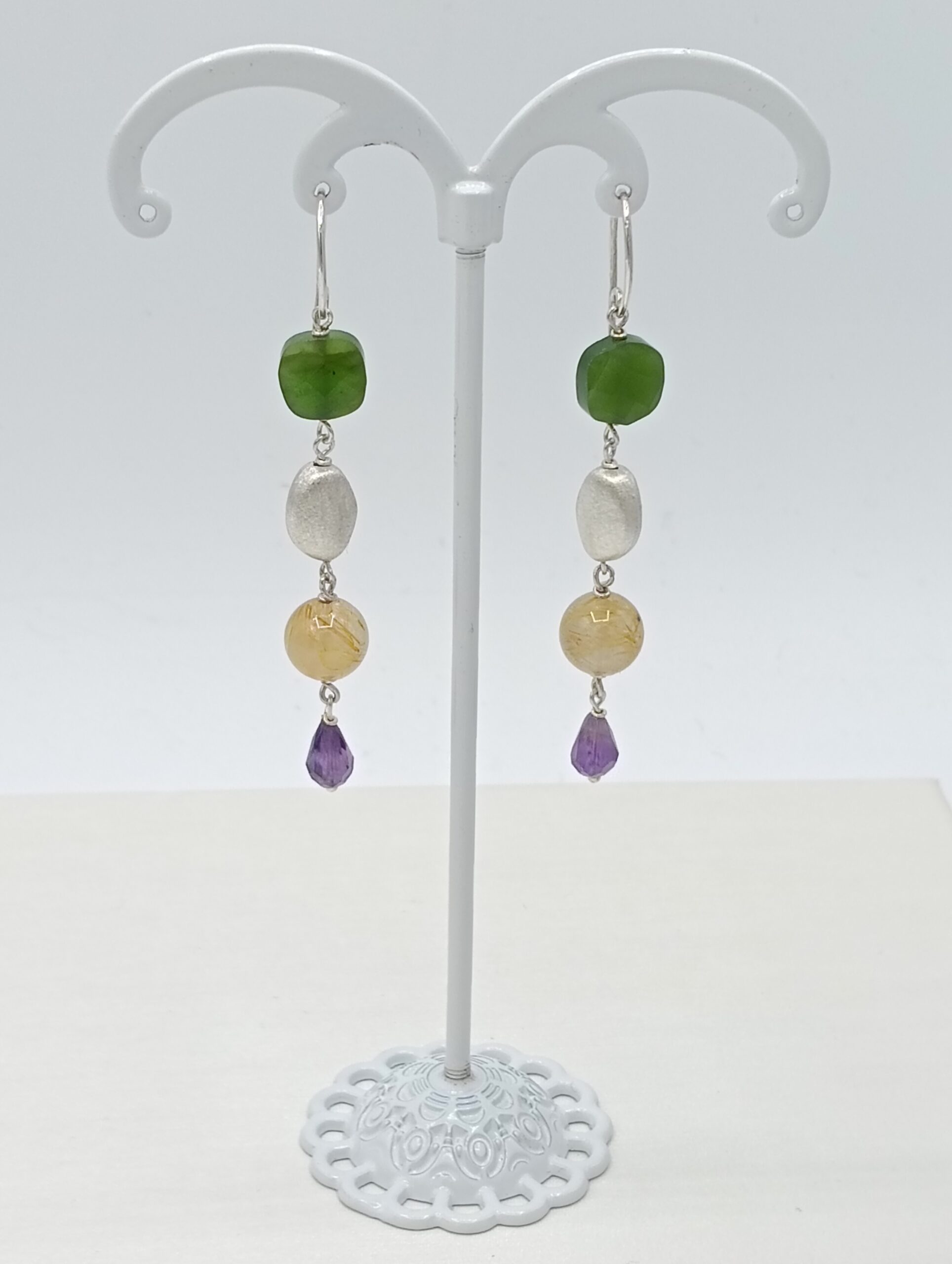 Orecchini argento con pietre: Ametista, Giada, Quarzo rutilato